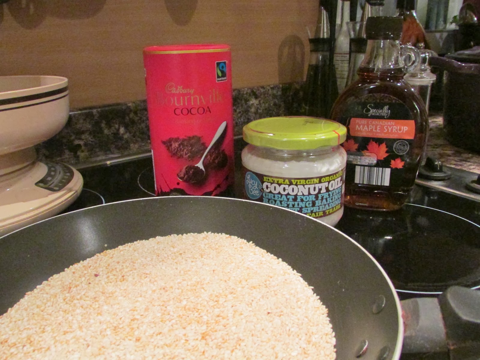 I have to say, my family were not exactly bowled over by Dale's original recipe (the sesame version), although I was.  The sesame flavour is pretty strong, which is great if you love sesame, not so great if you don’t. So, I played around a little and replaced the sesame seeds with ground almonds, and the maple syrup with honey.  I love both versions, although the taste of the almond one is a little closer to the ‘real’ thing.